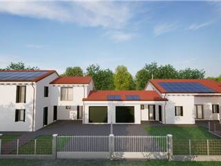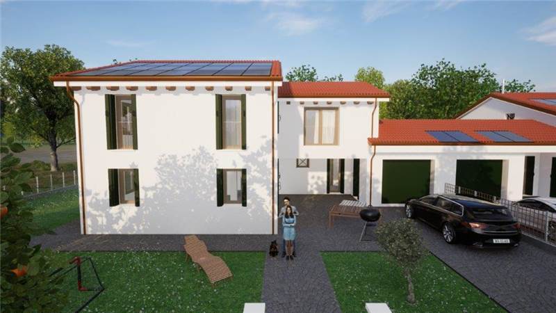 Se stai cercando un'abitazione in zona di campagna, immersa nel verde, abbiamo la casa che fa per te. In periferia di Noale, proponiamo una nuova porzione centrale di trivilla in corso di costruzione con consegna al grezzo avanzato od al finito chiavi in mano, composta al piano terra da ingresso soggiorno, cucina abitabile, disimpegno, 2 camere, 2 bagni finestrati, 2 portici, garage e vano tecnico. Al piano primo da grande soffitta di 50 mq con altezza media di 2,41 mt e bagno. Giardino di proprietà. Riscaldamento a pavimento in pompa di calore, fotovoltaico 8 Kw, predisposizione impianto di allarme, ventilazione meccanica, serramenti in Legno ecc..€ 220.000 al grezzo avanzato, € 350.000 al finito chiavi in mano la porzione a EST, mentre la porzione a ovest € 240.000 al grezzo avanzato, € 380.000 al finito